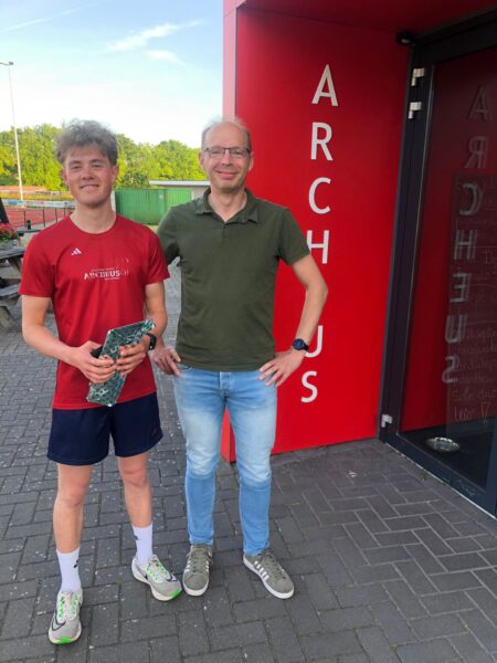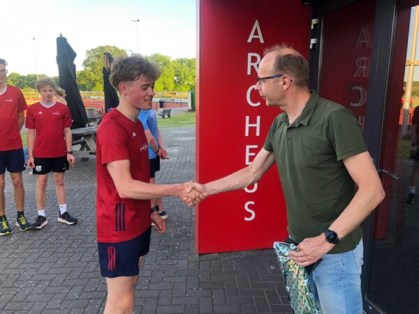 Kort geleden heeft Jurre van Alst met succes de opleiding Assistent Looptrainer met succes afgerond. Namens Archeus ontvangt Jurre hier de felicitaties van voorzitter Erwin Hekman.