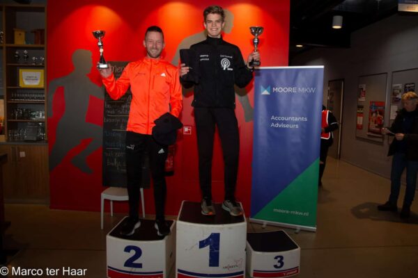 Mannen 10 km – tot 40 jaar: 1. Luca Greven, Argo : 32:23, 2. Lars Duistermaat, Archeus : 36:03, 3. Dinant Huurneman, Archeus : 39:05